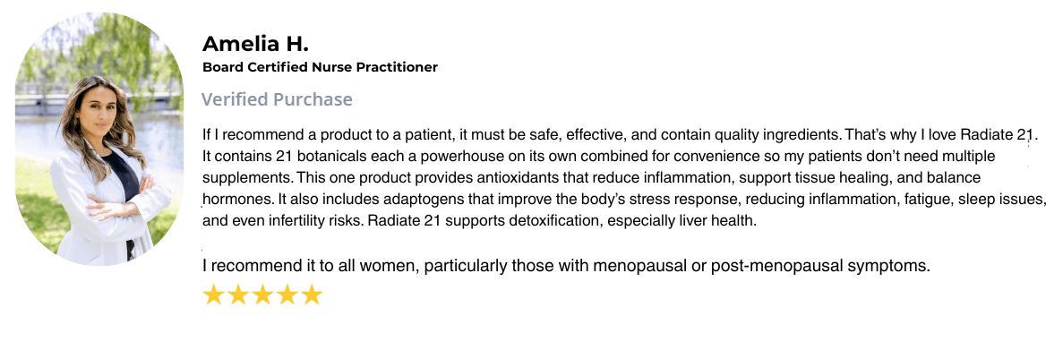 Radiate 21 is more than a supplement — it’s a carefully crafted formula designed to restore balance, energize your body, and help you feel like yourself again.